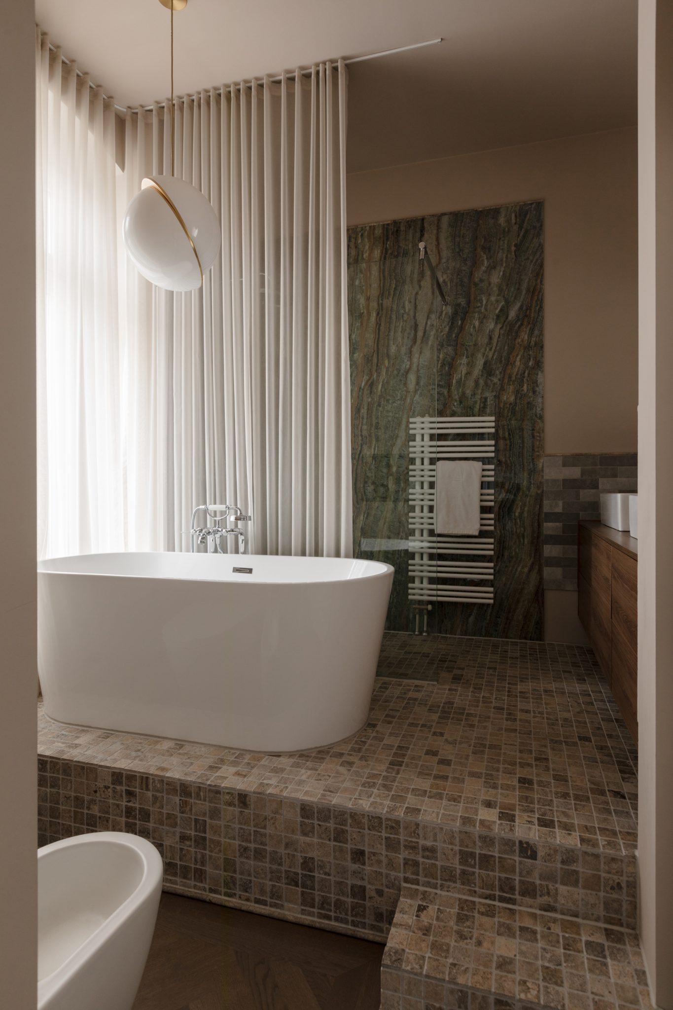 Für dieses 75 m² große Apartment in Berlin-Mitte haben wir eine vollständige Komplettsanierung umgesetzt. Das Design vereint stilvollen Chic mit besonderen Akzenten und schafft eine unverwechselbare Atmosphäre. Hochwertige Materialien und sorgfältig ausgewählte Details verleihen dem Raum ein modernes, elegantes Ambiente, das sowohl einzigartig als auch zeitlos wirkt. Von der maßgeschneiderten Einrichtung bis zu den exklusiven Oberflächen spiegelt jeder Bereich den Anspruch an Eleganz, Qualität und Individualität wider. Über dieses Projekt hat unter anderem die Berliner Zeitung berichtet.