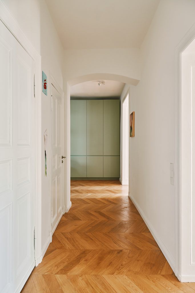 In diesem Projekt haben wir gemeinsam mit Architekt Christopher Sitzler eine Berliner Altbauwohnung umfassend modernisiert und neu strukturiert. Durch gezielte Grundrissoptimierung, die Erneuerung der gesamten Elektrik und Wasserinstallation sowie die Gestaltung zweier neuer Bäder, eines davon fugenlos, wurde das Zuhause sowohl funktional als auch ästhetisch auf ein neues Niveau gehoben. Ein besonderes Highlight ist das handverlegte französische Fischgrät-Parkett, das den historischen Charakter des Altbaus elegant betont und für ein warmes Wohngefühl sorgt. Zusätzlich wurden die originalen Altbautüren sorgfältig aufgearbeitet, um den Charme der Bestandsarchitektur zu bewahren und harmonisch mit den modernen Elementen zu verbinden. BondBau übernahm die komplette Ausführung, koordinierte alle Gewerke und realisierte die Planung bis ins Detail, sodass die Wohnung schlüsselfertig übergeben werden konnte.